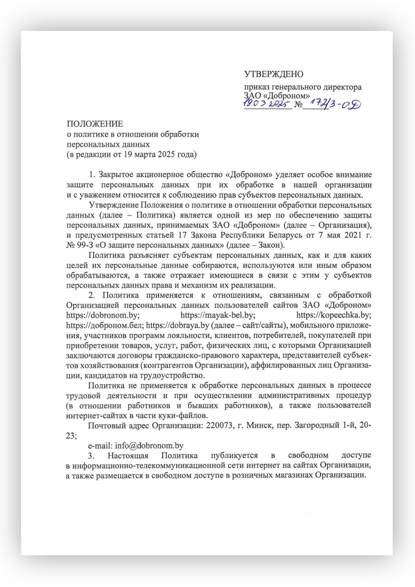 Политика ЗАО "Доброном" в отношении обработки персональных данных